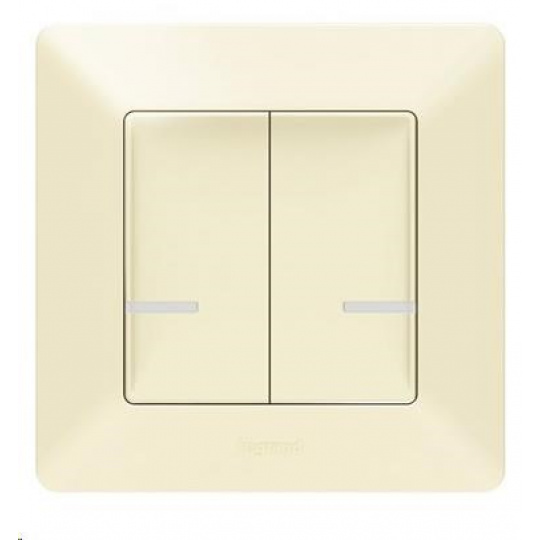 Valena Life s dvojitým bezdrôtovým spínačom osvetlenia Netatmo (batéria CR2032 a obojstranná lepenka sú súčasťou balenia) na ovládanie až 20 káblových zariadení (vypínačov/stmievačov, zásuviek, mobilných zásuvkových adaptérov, káblových zásuviek a osvetľovacích mikromodulov). Zadná strana je úplne plochá (možno ju pripevniť na stenu, sklo, nábytok pomocou skrutiek alebo obojstrannej lepenky) - farba béžová, dodáva sa s rámom v béžovej farbe