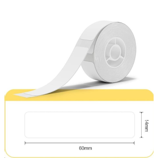 Nalepovacie štítky pre štítkovače a tlačiarne Niimbot kompatibilné s modelmi Niimbot D11 a D110. Balenie obsahuje 1x rolu bielych samolepiacich štítkov Niimbot o rozmere 14x60mm - 110ks. Rolka je určená pre priamu termálnu tlač pomocou kompatibilnej tlačiarne Niimbot. Štítky majú lepiacu vrstvu, ktorá účinne priľne na rôzne materiály. Perforácia medzi jednotlivými štítkami uľahčuje ich rozdelenie po tlači. Etikety značky NIIMBOT sú vyrobené z vysoko odolných materiálov a po tlači sú laminované, čo zaisťuje ich dlhú životnosť. Sú odolné voči mrazu, oleju, vode a majú zvýšenú odolnosť proti slnečnému žiareniu. Vďaka tomu môžete mať istotu, že vaše etikety zostanú čitateľné a pevne prichytené dlhú dobu..