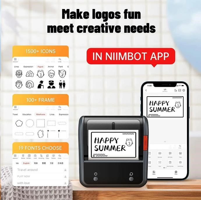 Pri navrhovaní štítku môžete použiť rôzne písma, tvary, ikony, veľkosti a formáty, aby ste si vytlačili štítky alebo štítky podľa svojej predstavy. Môžete importovať fotografie z vášho telefónu alebo obrázky z internetu, aby bol dizajn jedinečnejší. Bezplatná aplikácia pre iOS alebo Android ponúka viac ako 1500 ikoniek, viac ako 100 rámčekov, 19 písma a umožňuje taktiež tlač QR kódov. Môžete si vybrať z rôznych štýlov písma, veľkostí a formátov, aby ste si vytlačili štítky alebo štítky presne podľa svojej predstavy. Tlačiareň automaticky rozpozná vložené štítky a aplikácia prispôsobí rozmery pre tlač.