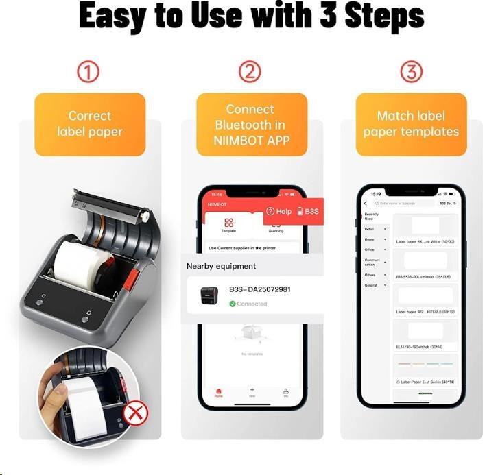 NIIMBOT B3S je tlačiareň štítkov, ktorá kombinuje výkon, pohodlie a kvalitu. S jej jednoduchou obsluhou a vynikajúcimi funkciami vás prekvapí, aké rýchle a jednoduché je vytváranie profesionálnych štítkov.