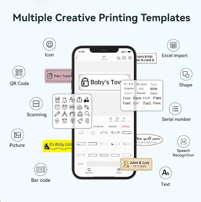 Pri navrhovaní štítku môžete použiť rôzne písma, tvary, ikony, veľkosti a formáty, aby ste si vytlačili štítky alebo etikety podľa vlastnej predstavy. Môžete importovať fotografie z telefónu alebo obrázky z internetu, aby bol dizajn jedinečný. Bezplatná aplikácia pre iOS alebo Android ponúka viac než 1500 ikôn, viac než 100 rámočiek, 19 fontov písma a tiež umožňuje tlač QR kódov. Môžete si vybrať z rôznych štýlov písma, veľkostí a formátov, aby ste si vytlačili štítky alebo etikety presne podľa svojich predstáv. Tlačiareň automaticky rozpozná vložené štítky a aplikácia prispôsobí rozmery pre tlač.