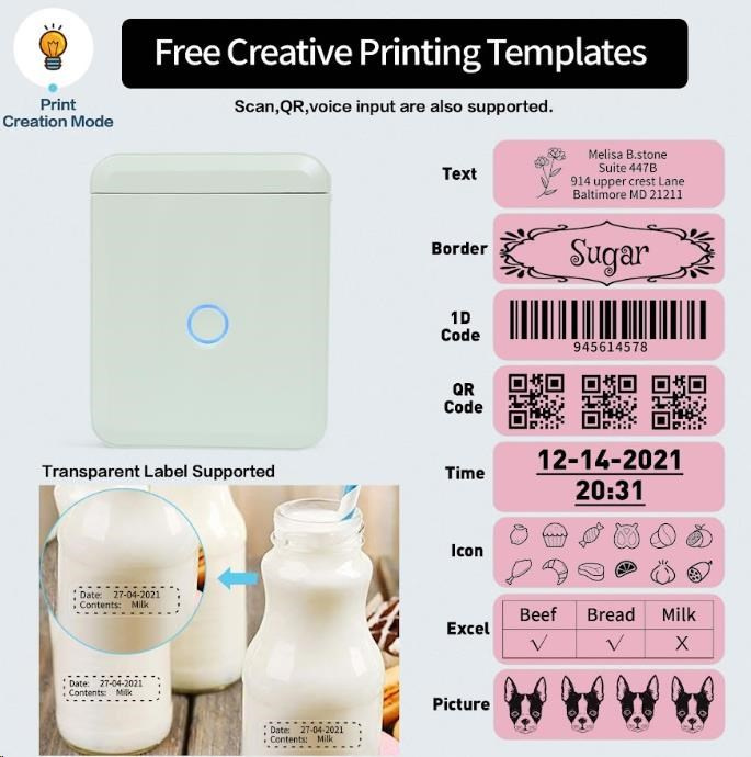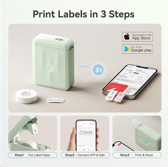 Pri navrhovaní štítku môžete použiť rôzne písma, tvary, ikony, veľkosti a formáty, aby ste si vytlačili štítky alebo etikety podľa svojej predstavy. Môžete importovať fotografie zo svojho telefónu alebo obrázky z internetu, aby bol dizajn jedinečný. Bezplatná aplikácia pre iOS alebo Android ponúka viac ako 1500 ikoniek, viac ako 100 rámečkov, 19 fontov písma a umožňuje tiež tlač QR kódov. Môžete si vybrať z rôznych štýlov písma, veľkostí a formátov, aby ste si vytlačili štítky alebo etikety presne podľa svojej predstavy. Tlačiareň automaticky rozpozná vložené štítky a aplikácia prispôsobí rozmery pre tlač.