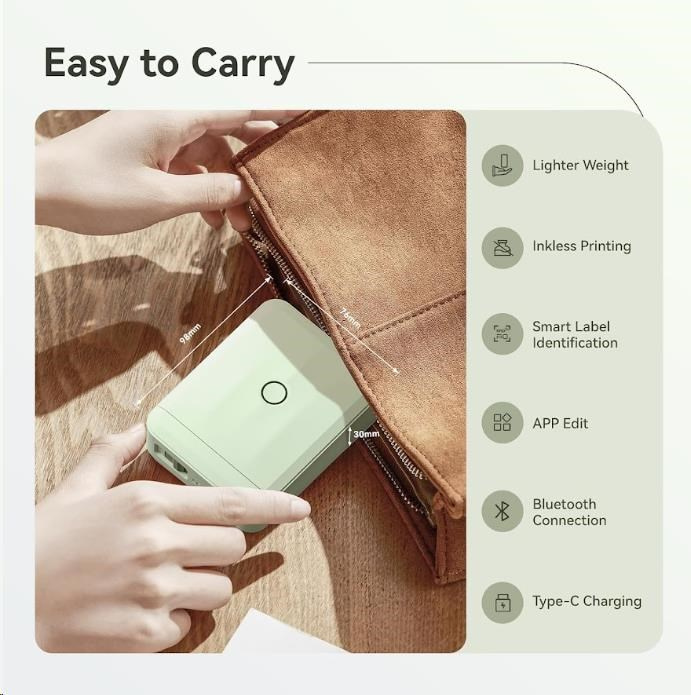 Ponúka širokú škálu možností tlače. Môžete tlačiť vertikálne aj horizontálne, tvoriť čiarové kódy a sériové čísla, čo vám umožňuje prispôsobiť etikety presne podľa svojich potrieb. S rozlíšením 203 dpi, maximálnou šírkou tlače 12 mm a kompatibilitou s 12-15mm štítkami, si vyrobíte polepy a štítky v tej najvyššej kvalite. To všetko v minimálnych rozmeroch. Tlačiareň si môžete zobrať kamkoľvek a ani si nevšimnete, že ju máte. Tlačá