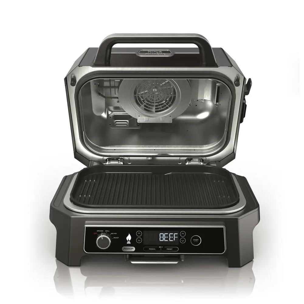 Seznamte se s Ninja Woodfire™ Pro XL venkovním elektrickým BBQ grilem a udírnou s chytrou sondou!