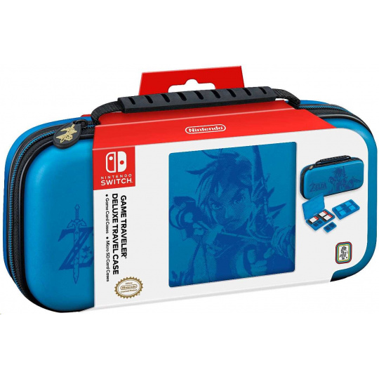 Luxusné cestovné puzdro NNS42BR s motívom The Legend of Zelda: Breath of the Wild V tomto luxusnom cestovnom kufríku s témou akčnej adventúry The Legend of Zelda: Breath of the Wild môžete bezpečne a bez starostí prepravovať svoju obľúbenú hernú konzolu Nintendo Switch. Neoddeliteľnou súčasťou tohto puzdra je nastaviteľný stojan, ktorý umožňuje upraviť polohu obrazovky podľa potreby pri používaní konzoly. Neskôr, keď konzolu vložíte späť do puzdra, stojan ochráni obrazovku pred poškriabaním. Čerešničkou na torte je prívesok na posúvači zipsu v podobe zlatej mince so symbolom oka. Súčasťou balenia sú aj dve plastové obaly na herné karty, z ktorých každé pojme štyri herné karty, ako aj dve plastové puzdrá na microSD karty, do každého z týchto menších puzdier sa zmestia dve microSD karty a každé z týchto puzdier sa zmestí na akúkoľvek pozíciu vo väčšom obale na herné karty. ŠPECIFIKÁCIA PRODUKTU: Výrobca: R.D.S. Industries Distribútor: Bigben Interactive Distribútor v Českej republike: HYPE Kategória: Príslušenstvo Platforma: Prepínač Lokalizácia: v angličtine.