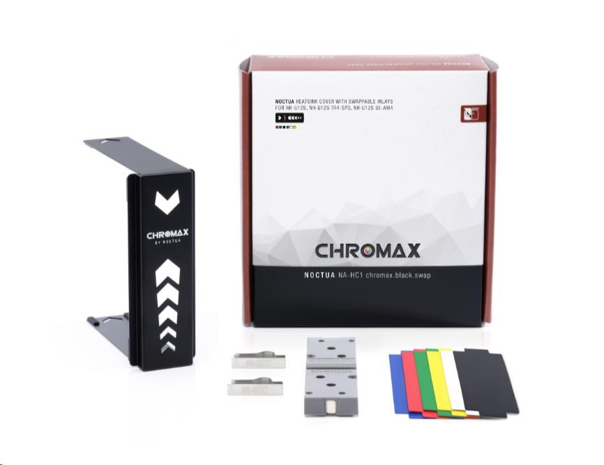 Chladičový kryt NA-HC1 chromax.black.swap je pridavné príslušenstvo pre oceňované chladiče CPU Noctua NH-U12S, NH-U12S TR4-SP3, NH-U12S SE-AM4 a NH-U12S DX-3647. Vyrobené z vysoko kvalitného hliníka s čiernym práškovým nástrekom a vrátane vymeniteľných vložiek v čiernej, bielej, červenej, modrej, zelenej a žltej farbe umožňuje používateľom farebne prispôsobiť chladič tak, aby ladil s obľúbenými farebnými schémami zostáv, ako je celá čierna, čierno-bielá alebo čierno-červená. Vďaka jednoduchej a priamočiarej inštalácii trvá zmena vzhľadu vášho chladiča NH-U12S len pár minút a nevyžaduje ani jeho odpojenie od CPU. V kombinácii s ventilátorom chromax.black.swap edície NF-F12 vám NA-HC1 dáva nekonečné možnosti navrhnúť si vlastný, individuálny NH-U12S, ktorý vyzerá rovnako skvele, ako chladí!