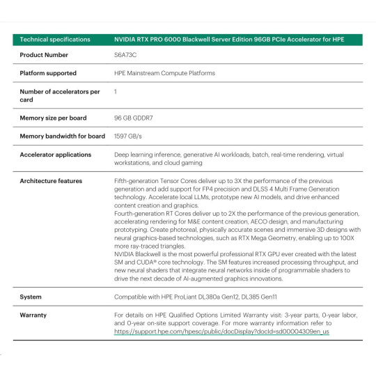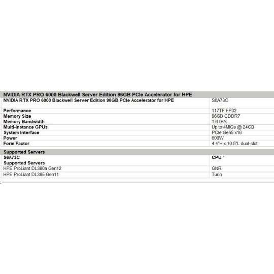 NVIDIA RTX PRO 6000 Blackwell Server Edition 96GB PCIe Accelerator for HPE