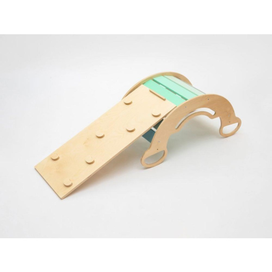 Kvalitný drevený obojstranný kúsok (len k hojdačke SMILE) má všestranné využitie. Z jednej strany zábavná šmykľavka, po ktorej sa deti zosunú možno na mäkký podložku, na druhej strane lezecká doska s úchytmi, ktorá rozvíja pohybové zručnosti vašej dievčatka aj chlapca. Obojstranná doska je doplnkom k Montessori hojdačke SMILE. Položená na bočnej hrane hojdačky smile vytvorí deťom praktický stolček na desiatu aj na maľovanie. Obojstranné prkno nie je možné používať s Montessori hojdačkami 5in1 ELIS DESIGN. Prkno je širšie ako naše dúhové a drevené hojdačky. PRKNO JE DOPLNKOM IBA KU MONTESSORI HOJDAČKÁM SMILE, ktorú premení na detský stolček.