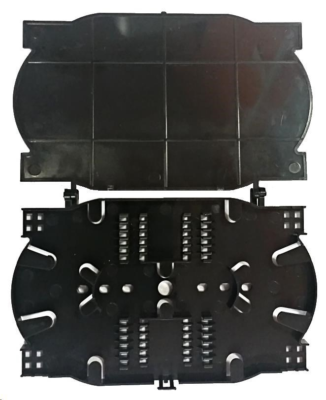 • Optická kazeta s uzáverom a hrebeňmi na 24 zvarov v 2 úrovniach, rozmery: 155x105x12mm