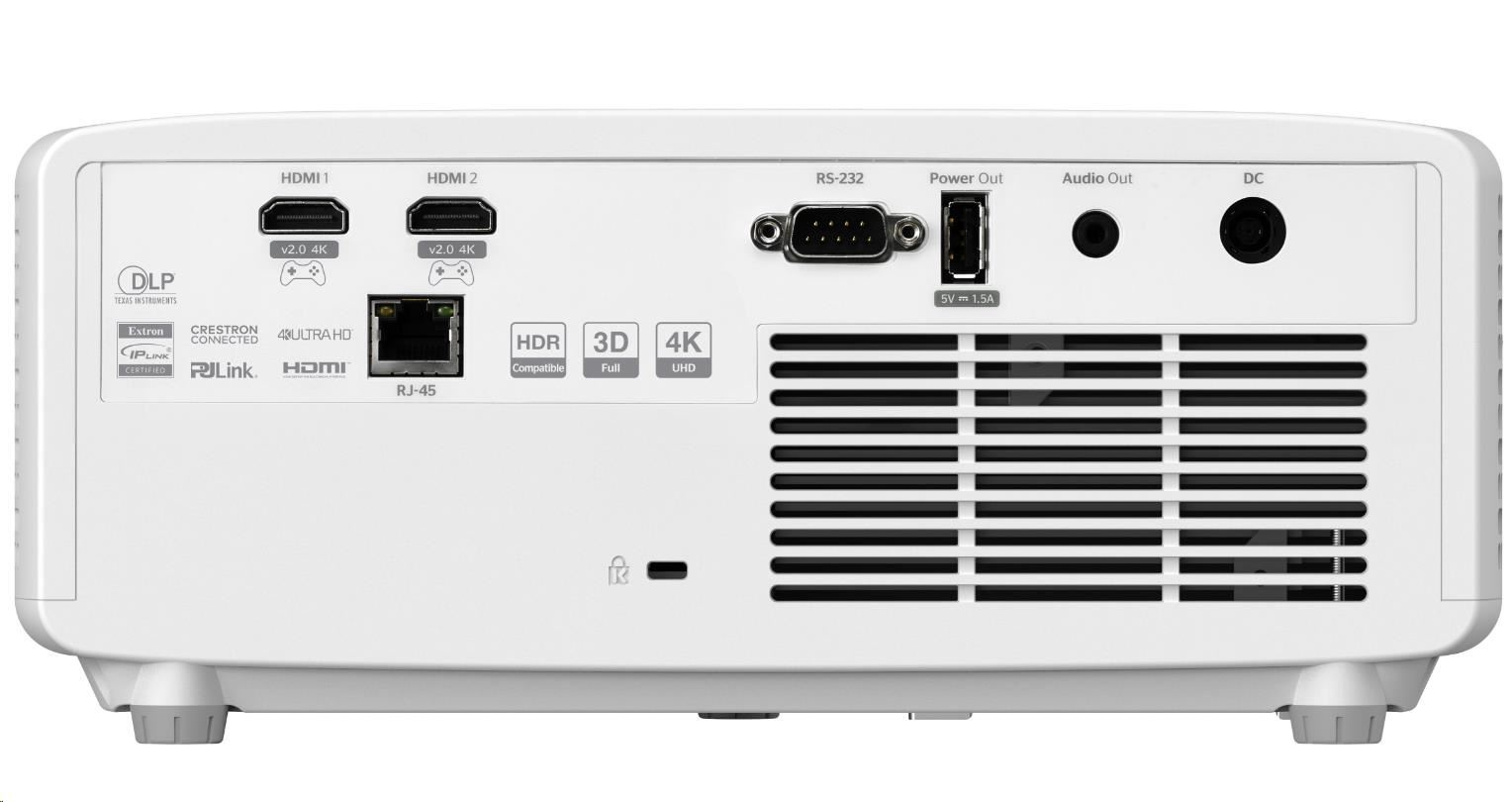 Skutočné rozlíšenie projektora:UHD (3840x2160); Technológia projektora:DLP; Kontrast (hodnota : 1):500 000; Svietivosť (v ANSI lumenoch):4000; Rozhranie:HDMI, USB, 3.5mm Jack, LAN, RS-232; Výbava:HDR, Korekce lichoběžníku manuální, Zoom, Ďiaľkové ovládanie, Reproduktory, Zoom, 3D.... viac