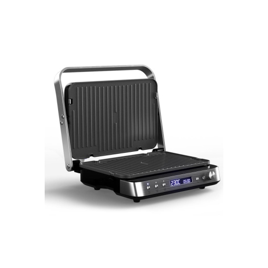 Domáce gril GRILLCHEF-3 splní aj tie najnáročnejšie očakávania dokonale pripraveného mäsa, rýb a zeleniny. Vytvorte si chutný obed, či večeru na dvoch grilovacích doskách s neprilnavým vroubkovaným a hladkým povrchom. Gril môžete využiť na ohrev vrchnej dosky, alebo spodnej dosky, alebo na ohrev oboch dosiek súčasne. Teplota grilu je nastaviteľná od 80 až 230 °C. Taktiež si môžete nastaviť čas, ktorý potrebujete na prípravu danej potraviny. Pri uplynutí zadaného času vás upozorní zvuková signalizácia. Veľký LCD displej je zabudovaný na prednej lište kontaktného grilu. Súčasťou grilu je aj miska na odkvapkávajúcu šťavu a olej.