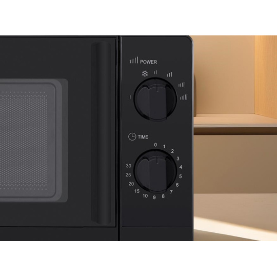 Táto mikrovlnná rúra disponuje až šiestimi režimami nastavenia ohrevu alebo rozmrazenia. Jej ovládanie je naozaj jednoduché a to prostredníctvom otočných ovládačov. Prvým si nastavíte silu ohrevu a druhým čas, ktorý požadujete na ohrev alebo rozmrazenie vášho pokrmu. Maximálny čas ohrevu je 30 minút.
