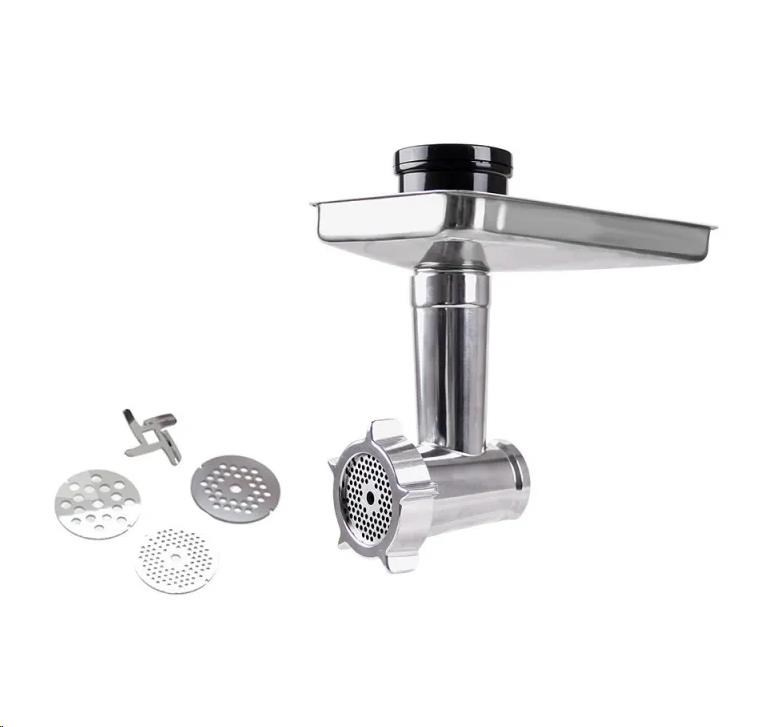 Kuchynský robot Chefino-M nie je len všestranným pomocníkom na miešanie, šľahanie a hnetenie, ale navyše v balení obsahuje aj praktický mlynček na mäso. Tento mlynček je navrhnutý tak, aby bez problémov zvládol spracovanie rôznych druhov mäsa, čo oceníte pri príprave domácich mäsových jedál. Vďaka jednoduchému rozobraniu a ľahkej údržbe si mlynček rýchlo obľúbite.
