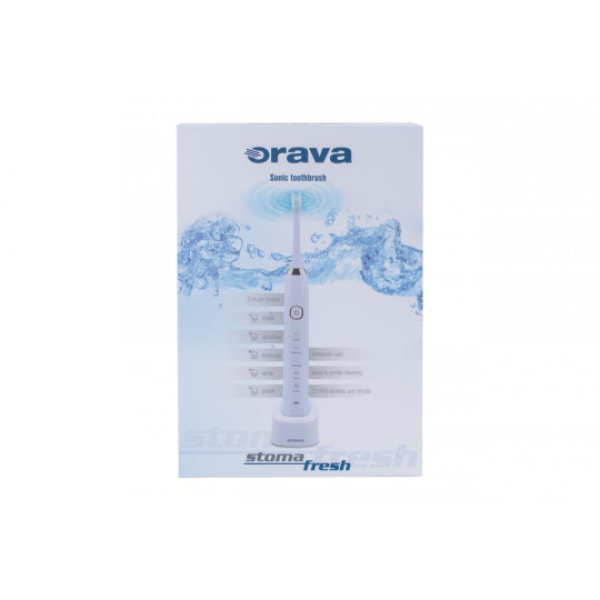 Orava Stomafresh sonický zubní kartáček, 5 režimů, cestovní pouzdro, časovač, bílá