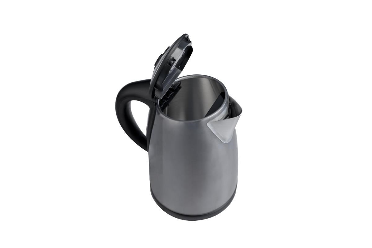 Elektrická varná konvica - šedá. Varná nádoba z ušľachtilej nerezovej ocele. Objem 1,7l. Otváranie vrchného víka konvice stlačením tlačidla. Varná nádoba na odnímateľnom 360° otočnom podstavci. Priemyselná teleso prekryté doskou z ušľachtilej ocele. Stupnica hladiny vody. Ochrana pred ohrevom bez vody. Auto vypnutie. Vyberateľné filtračné sitko na vodu. Sieťová šnúra odkladateľná v podstavci. Napájanie 230V 50 Hz, 2000 W