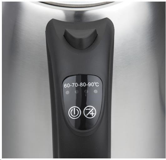 Nerezová rýchlovarná kanvica VK-3817 A s príkonom 2000 W a objemom 1,7 l. Kanvica umožňuje elektronicky regulovať teplotu vody, zohrievať na vopred zvolenú teplotu. Nastavenie 5-ich rôznych teplôt a stupnice sa mení podľa farieb.