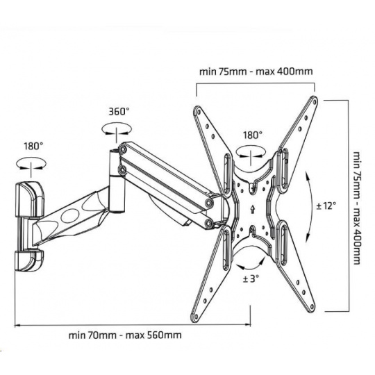 Otočný, sklopný, dĺžkovo a výškovo nastaviteľný držiak TV Fiber Mounts AX784 Plne nastaviteľný, kvalitný držiak na TV 32-60" s hmotnosťou do 22kg Kvalitný, plne nastaviteľný, dizajnový držiak na LCD, LED, OLED, 3D, Full HD televízory s hmotnosťou až 22kg. Optimálna uhlopriečka televízora 32-60". Držiak je vhodný na zavesenie televízora na stenu, do výklenku, na pilier alebo stĺpik, rovnako tak je vhodný aj na umiestnenie televízora do rohov miestností. Plná nastaviteľnosť vám umožní ľahko polohovať televízor presne podľa vašich potrieb a požiadaviek. Držiak TV vás milo poteší nielen svojou kvalitou, ale aj veľmi pekným dizajnom a jednoduchou polohovateľnosťou. Dodávame vrátane inštalačného materiálu, farebné prevedenie čierne. Otočný, sklopný, dĺžkovo a výškovo nastaviteľný držiak na LCD LED OLED 3D Smart televízie aj monitory s hmotnosťou do 22kg. Držiak je vhodný na zavesenie televízora na stenu alebo do rohu miestnosti, do výklenku alebo na pilier, stĺpik. Držiak Fiber Mounts AX784 Technické údaje: pre televízory s hmotnosťou 9kg až 22kg na televízie a monitory s uhlopriečkou 32-60" podpora VESA 75x75 až 400x400 otáčanie do strán +/- 90° náklon +/- 12° úprava dĺžky od steny 70mm až 560mm úprava roviny obrazovky +/- 3° úchytky na vedenie káblov veľmi pekný vzhľad ľahké nastavenie TV do požadovanej polohy výborná kvalita farebné prevedenie čierne záruka 2 roky Držiak Fiber Mounts AX784 podporuje VESA štandardy (VESA normy): VESA 75x75 VESA 100x100 VESA 200x100 VESA 200x200 VESA 300x300 VESA 400x200 VESA 400x400