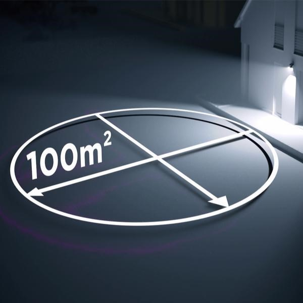 Vysoko citlivy pohybový senzor s dosahom 7,5 metrov, ktorý okamžite rozpozná aj ten najmenší pohyb! Všetky tmavé miesta sú okamžite jasne osvetlené - konečne uvidíte všetko!