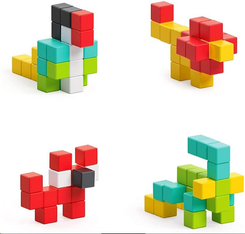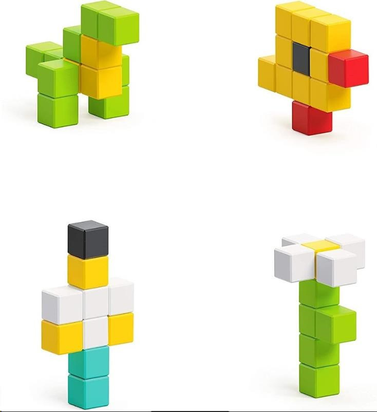 Každý z magnetických blokov PIXIO je kocka s rozmermi 8x8x8mm. Vo vnútri je 6 malých magnetov s hmotnosťou menšou ako 1 g. Šikovný a jedinečný dizajn magnetov dáva nekonečné možnosti skladania vzorov – neexistuje žiadny nesprávny spôsob stavania a tvorby, pretože ide len o kreativitu, predstavivosť a zručnosť tvorcu. Všetky modely PIXIO sú navzájom kompatibilné.