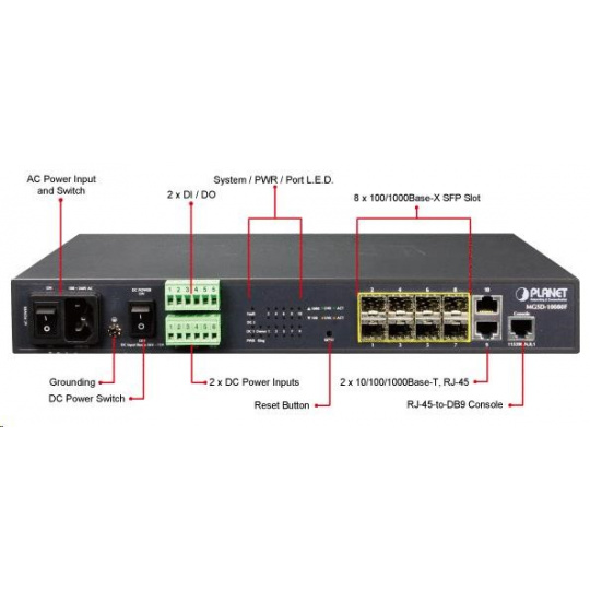 Planet MGSD-10080F Metro switch 8x SFP(DDM) 100/1000Base-X, 2x 1000Base-T, AC+DC, DI/O, SNMPv3, IGMPv3,IPv6