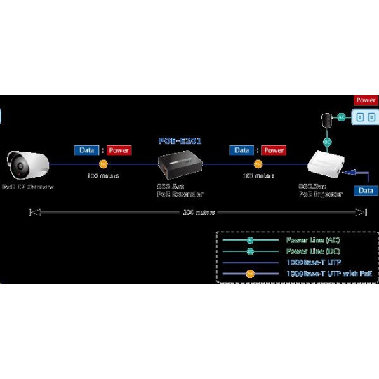 Planet POE-E201 PoE ethernet extender, IEEE802.3at, 26W, Gigabit