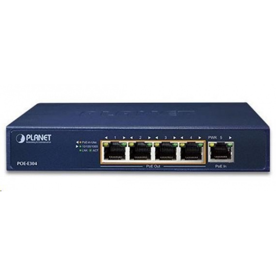 Planet POE-E304 PoE extender, 1xPoE-in, 4xPoE-out 65W, 802.3bt/at/af, Gigabit