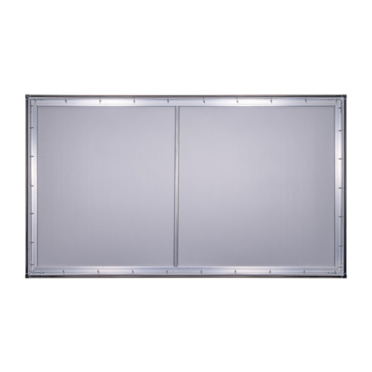 Rám plátna je potiahnutý čiernym semišom na pohlcovanie okolitého svetla a zvýraznenie projekčných farieb.