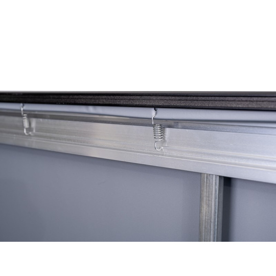 Rám plátna je potiahnutý čiernym semišom pre pohltenie okolitého svetla a zvýraznenie farieb projekcie.