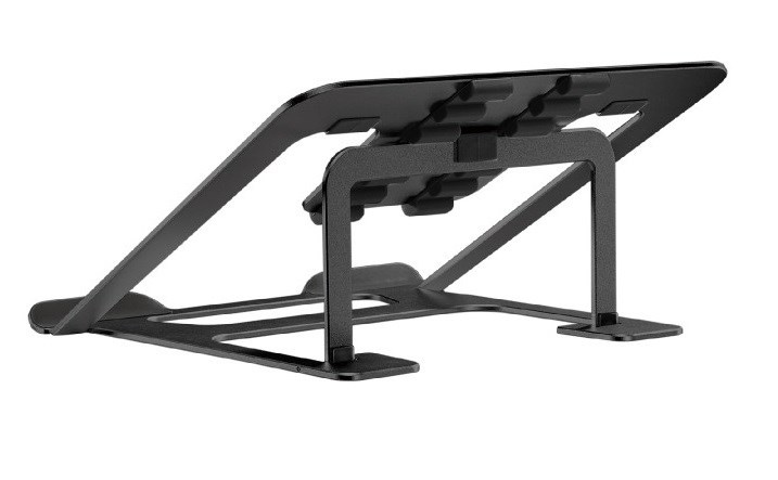 Podložka na notebook laptop Fiber Mounts M4C16B čierna Prenosná hliníková podložka / stojan na notebook alebo laptop 11-15", polohovateľná, nosnosť 5kg, farba čierna Kvalitná hliníková podložka / stojan na ergonomické podloženie notebooku alebo laptopu s uhlopriečkou 11-15" (bežná veľkosť) a 6-stupňové polohovanie 78mm až 124mm pre nastavenie najvhodnejšieho uhla sklonu pre správne držanie tela pri práci alebo hraní na notebooku alebo laptope. Podstavec je opatrený protisklzovými silikónovými podložkami, ktoré zariadenie výborne stabilizujú a nebránia cirkulácii vzduchu pre spoľahlivé chladenie. Stolný držiak, podstavec, stojan na notebook Fiber Mounts M4C16B Hliníkový ergonomický podstavec na notebook Fiber Mounts M4C16B Technické údaje: nosnosť 5kg na notebooky a laptopy s uhlopriečkou 11-15" 6 stupňov nastavenia výšky 78-124mm protisklzové silikónové podložky pre spoľahlivé zafixovanie polohy výrazné zlepšenie ergonómie pre pohodlnú prácu alebo hranie neobmedzuje dostatočné chladenie zariadenia možnosť zloženia pre jednoduché prenášanie alebo na cesty (235x223x13mm) materiál hliník farebné prevedenie čierne záruka 5 rokov Kvalitná hliníková podložka stojan na notebook pre výrazné zlepšenie ergonómie a pohodlia pri práci alebo hraní hier Fiber Mounts M4C16 Podložka je vhodná pre všetky bežné veľkosti notebookov a laptopov od všetkých výrobcov. Odporúčaná veľkosť notebooku je 11-15", ale fungovala rovnako spoľahlivo aj pri použití na notebooku o veľkosti 17,1". Odporúčame nielen na pracovné účely, ale aj pri používaní notebooku deťmi pri hraní hier - výrazná úľava pre vaše chrbát, pretože značne obmedzuje hrbenie.