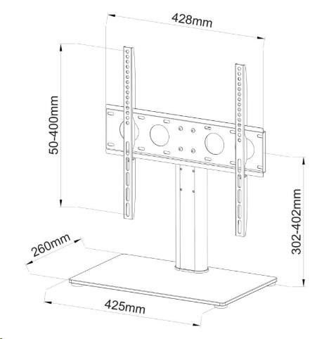 Elegantný stojan na TV 32-55", nastaviteľná výška, špičková kvalita, nosnosť 40 kg Vysokokvalitný stojan na TV a monitory s uhlopriečkou 32" až 55" a nosnosťou 40 kg. Základňa s rozmermi 425 x 260 mm je vyrobená z 8 mm hrubého čierneho bezpečnostného skla. Ostatné časti sú vyrobené z liatiny alebo ocele. Držiak podporuje štandardy VESA 100x100 až 400x400, má systém na upevnenie televízora. Nastavenie výšky od 302 do 402 mm (do stredu obrazovky). Systém na vedenie káblov, bezpečnostný kábel na ukotvenie do nábytku alebo stien, inštalačný materiál. Vynikajúca kvalita za bezkonkurenčnú cenu. ErgoSolid Castor 2 - elegantní podstava na televizi nebo monitor 32 až 55 palců Technické údaje: nosnost 40kg podporuje VESA standardy 100x100 až 400x400 doporučujeme na televizory a monitory s úhlopříčkou 32" až 55" nastavení výšky 302mm až 402mm systém vedení kabeláže podstava z bezpečnostího skla o rozměrech 425mm x 260mm x 8mm fixace Tv na držák bezpečností lanko pro uchycení k nábytku nebo zdi elegantní design vynikající kvalita instalační materiál barevné provedení černé záruka 2 roky Bezpečností lanko pro uchycení k nábytku nebo ke zdi ErgoSolid Castor 2 Fixace Tv na držák podstavce ErgoSolid Castor 2 Televizní podstavec ErgoSolid Castor 2 podporuje VESA standardy: VESA 100x100 VESA 200x100 a 100x200 VESA 200x200 VESA 300x100 a 100x300 VESA 300x200 a 200x300 VESA 300x300 VESA 400x200 a 200x400 VESA 400x300 a 300x400 VESA 400x400..