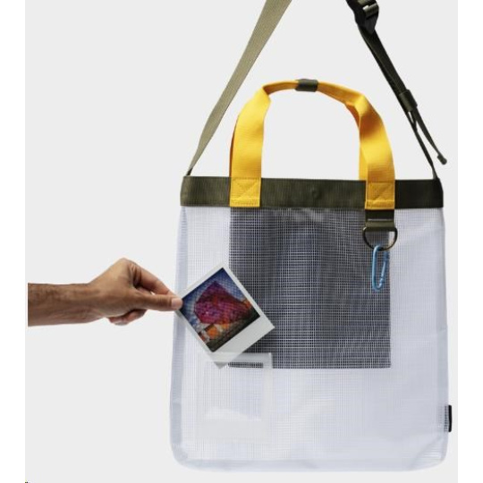 Vyznačuje sa charakteristickými farbami Polaroidu a držiakom, ktorý umožňuje personalizáciu pomocou fotografie Polaroid, takže je skutočne jedinečný. Ukažte svojho rozkošného psa, najnovšiu fotografiu z dovolenky alebo úžasnú krajinu, ktorú ste vyfotili. Záleží len na vás.  Držiak na polaroid Silná rukoväť a popruh na telo Nastaviteľný ramenný popruh Značka Polaroid Vonkajšia strana z recyklovaného ripstopu Polyesterová podšívka Stredové zapínanie na patentky Upevnenie karabínou Základná konštrukcia vo tvaru T Čierna taška zo 100% polyesteru Rozmery: D 360 mm x V 470 mm x H 15 mm.