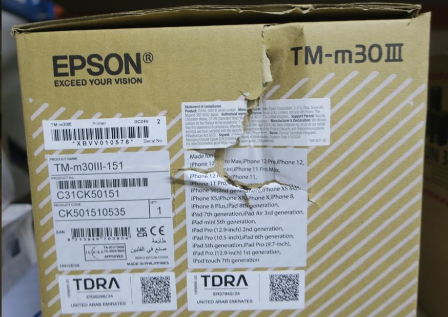 .POŠKOZENÝ OBAL - Epson TM-m30III, USB, USB-C, BT, Ethernet, Wi-Fi, 8 dots/mm (203 dpi), cutter, white