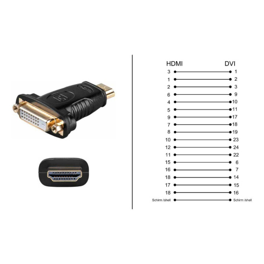- Adapter HDMI A male - DVI-D (24+1) female Dual-Link M/F, pozlátené