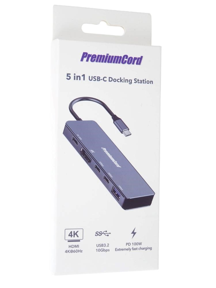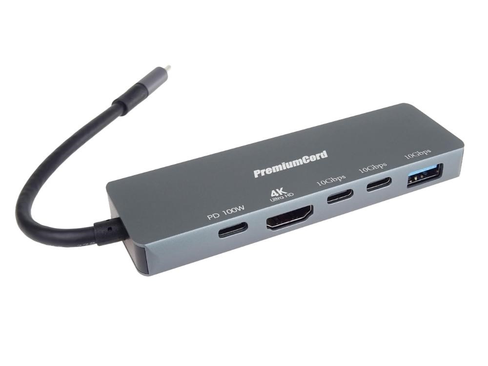 PremiumCord Adaptér USB-C na 4K@60Hz HDMI + 10G USB3.2 A + 10G 2x USB-C + PD