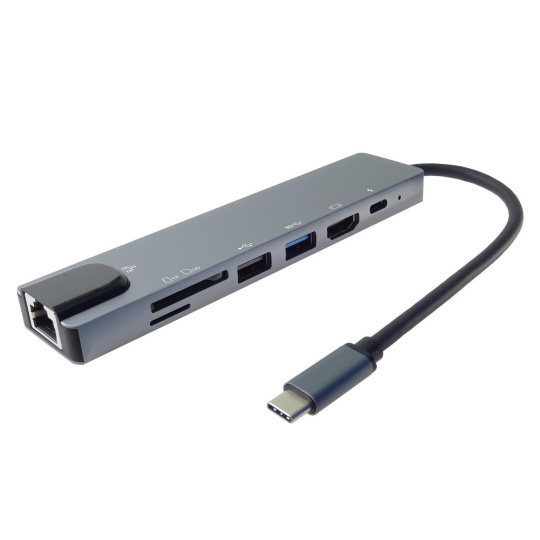 - Výstupný konektor: HDMI samica + USB3.0 samica + USB2.0 samica + PD (power delivery) + čítačka kariet SD/TF + RJ45 konektor na ethernet 10/100Mbps