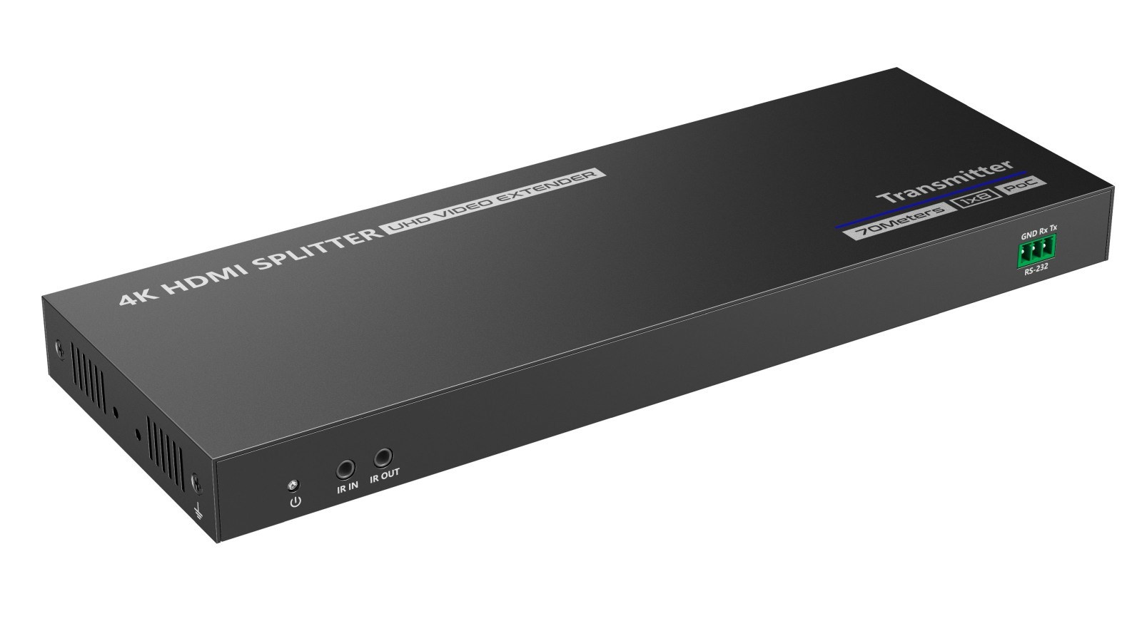 Splitter+extender umožňuje pripojiť dve HDMI monitory na vzdialenosť 70m a zobrazit UHD 4K@30Hz až na 70m
