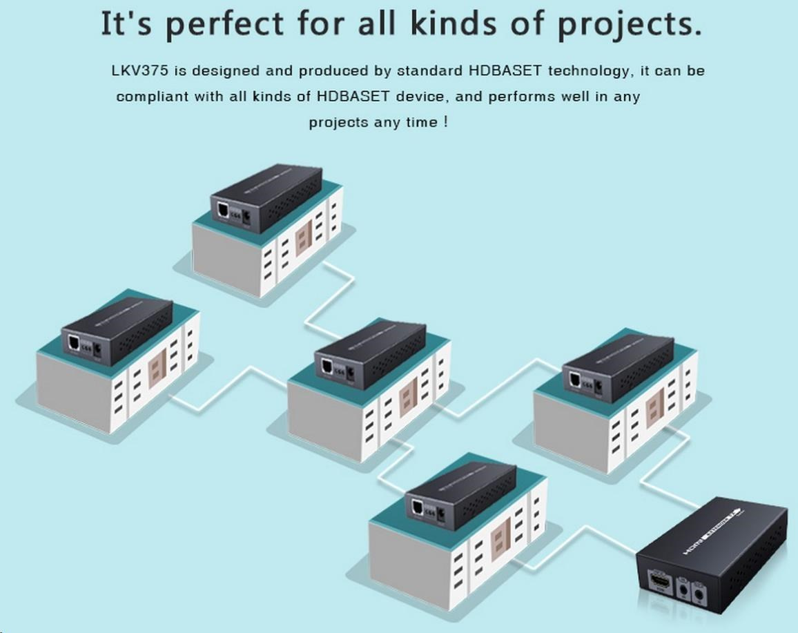 Zariadenie umožňuje prenášať signál HDMI 4K x 2K alebo FULL HD 1080p až na 70 m cez sieťový kábel.