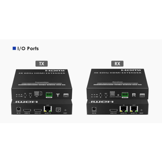 Zariadenie umožňuje po jednom sieťovom kábli alebo prostredníctvom 10G LAN siete preniesť nekomprimovaný 4K@60Hz HDMI signál s extrémne malým oneskorením a v špičkovej kvalite až na 80m a súčasne IR signály, RS232 a digitálny zvuk.