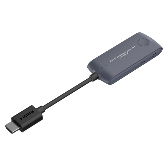 - Prijímač predstavuje malý dongle, ktorý sa zasúva priamo do HDMI konektora monitoru alebo projektora. Prijímač je napájaný pomocou USB kábla z USB portu.