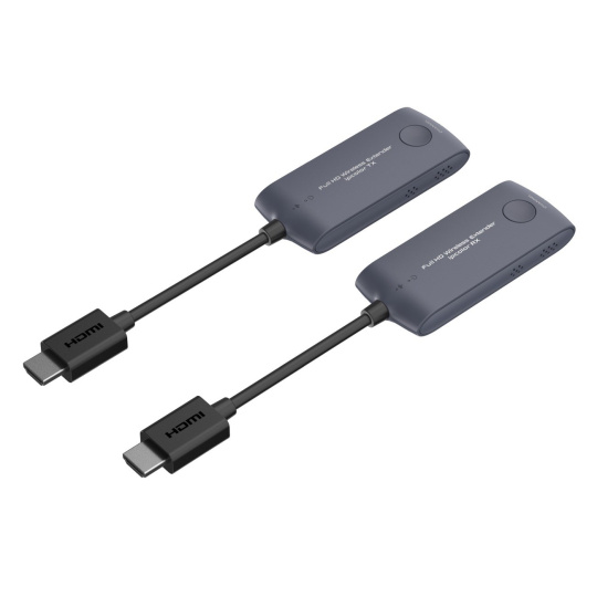 - Vysielacie a prijímacie adaptéry majú krátky HDMI kábel pre jednoduché pripojenie k počítaču a zobrazovaču alebo TV.