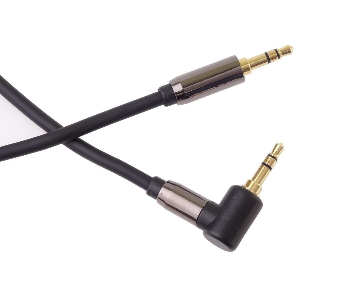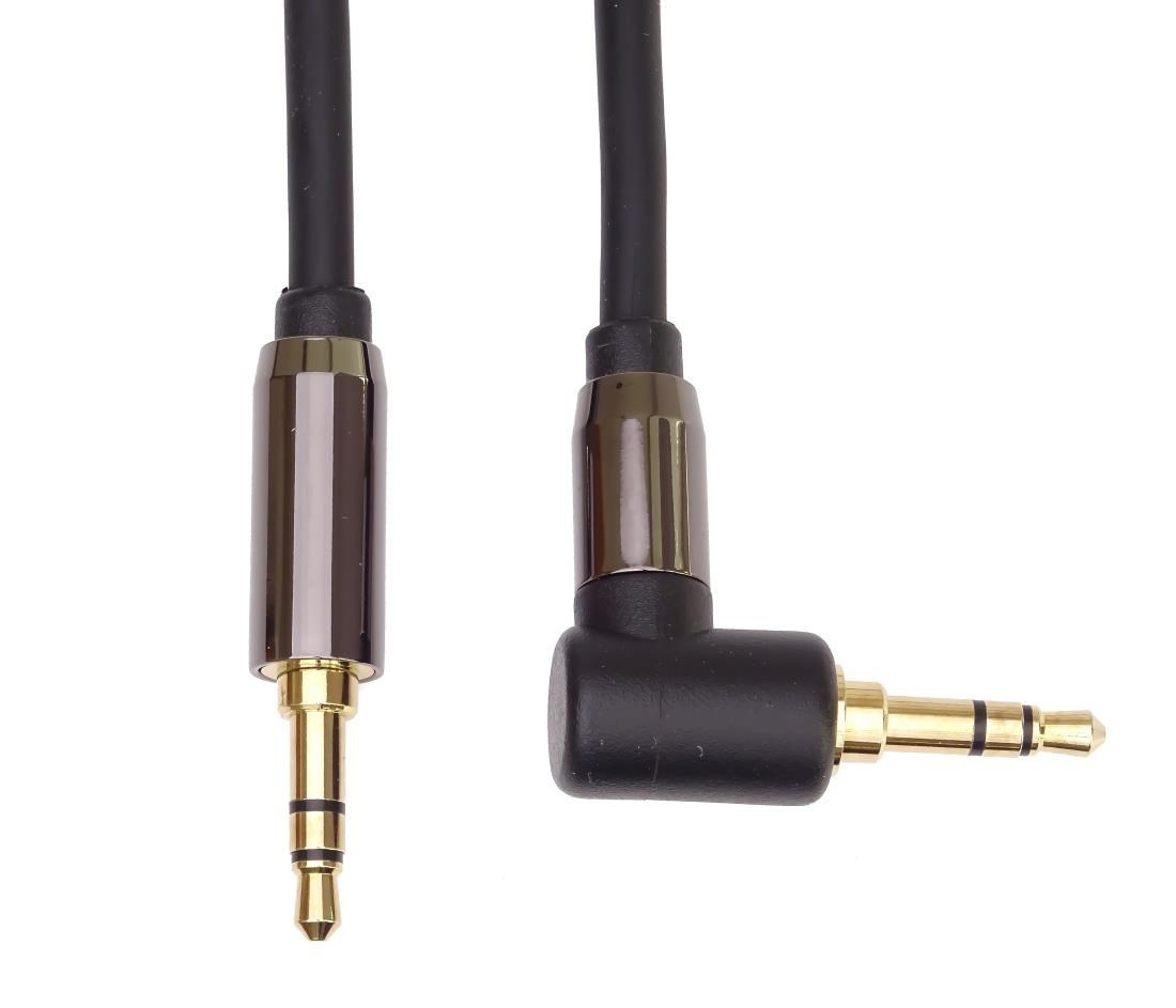 PremiumCord HQ stínený kábel stereo Jack 3,5 mm - Jack 3,5 mm zahnutý 90° 3m