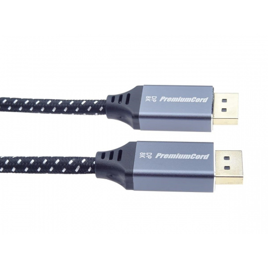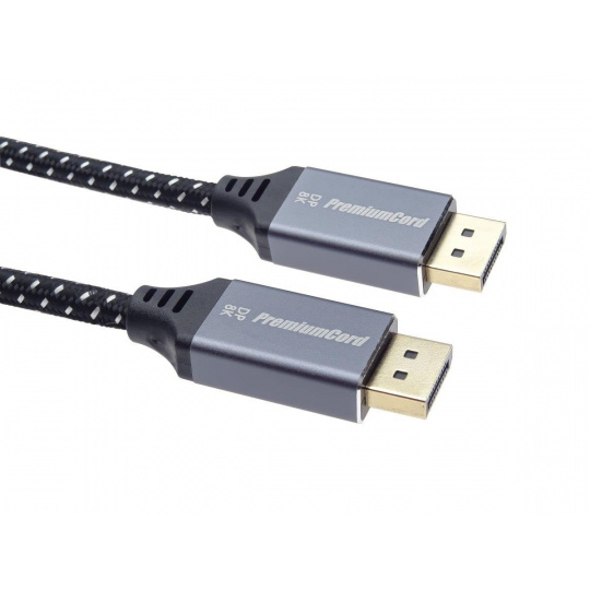PremiumCord DisplayPort 1.4 pripojovacie káble M/M pre rozlíšenie 8K, kovové krytky a pozlátené konektory, 1,5 m