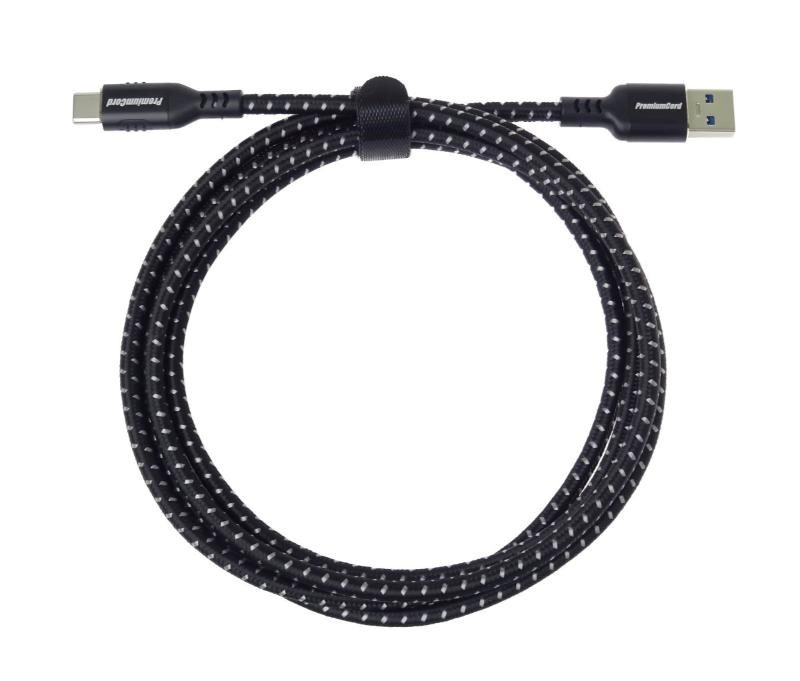 PremiumCord kábel USB-C - USB 3.0 A (USB 3.2 generácia 1, 3A, 5Gbit/s) 2m bavlnené opletenie a kovové hliníkové konektory