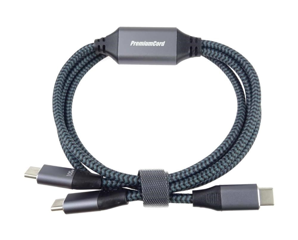 PREMIUMCORD Nabíjecí kabel USB-C, 2xUSB-C na USB-C, 100W, 1m, černá