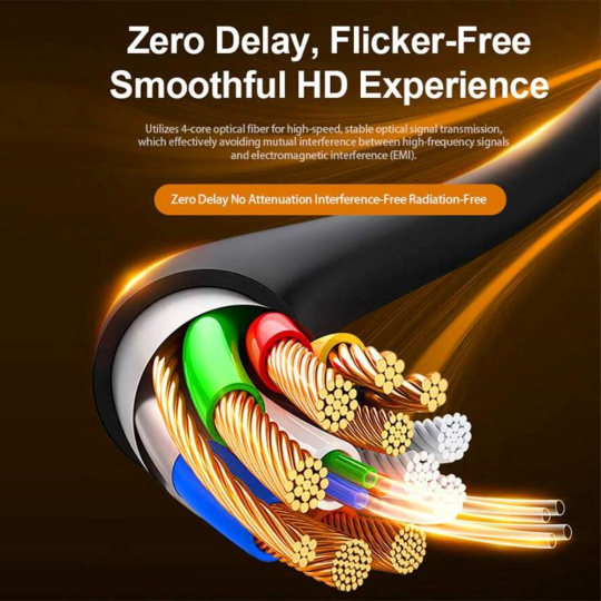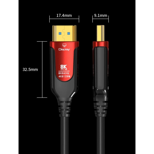 - HDMI 2.1 Ultra High Speed aktivní optický fiber kabel, podporuje HDMI2.1 nebo nižší HDMI2.0 a HDMI1.4