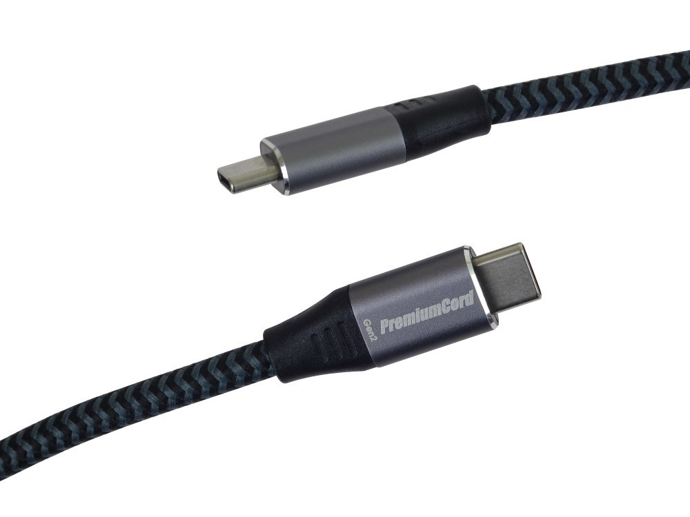 PremiumCord USB-C kábel ( USB 3.2 GEN 2x2, 5A, 100W, 20Gbit/s ) hliníkové krytky konektorov, bavlnený oplet, 3m