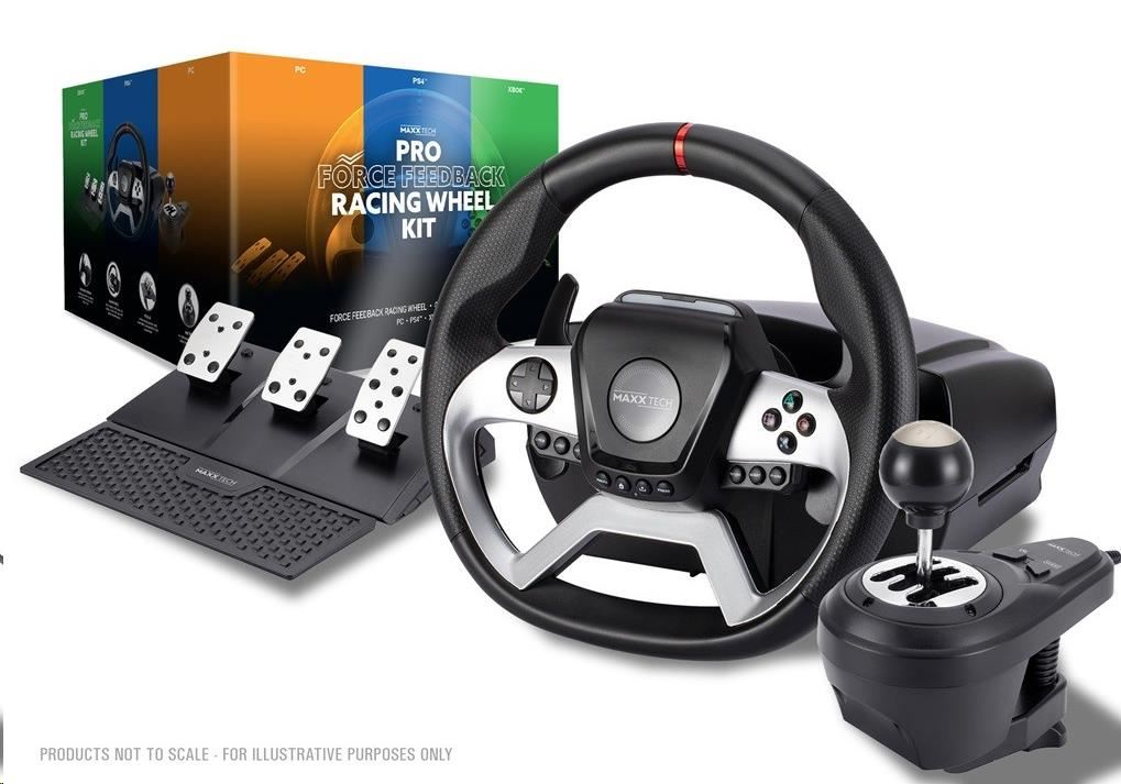 Súprava pretekárskeho volantu Maxx Tech Pro Force Feedback pre PC, Xbox a PS4