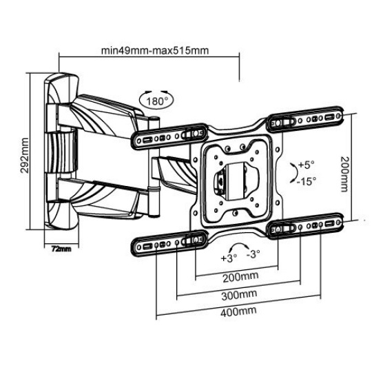 Prvotriedny držiak na TV Fiber Mounts Excelent Špičkový nástenný držiak na TV 23-60", otočný až +/-90°, sklopný +5°/-15°, výsuvný 49-515mm, VESA 75x75 až 400x400, nosnosť 35kg Hľadáte kvalitný, pekný a cenovo dostupný držiak na televíziu? Presne tieto vlastnosti má držiak Tv Fiber Mounts Excelent, ktorý Vás prekvapí krásnym dizajnom, ktorý ukrýva naozaj kvalitnú veľmi pevnú a bezpečnú konštrukciu pre spoľahlivé zaveste televízora. Držiak Fiber Mounts Excelent je ideálny na zaveste televízií s uhlopriečkou 23-60", výborne zvláda aj maximálne zaťaženie 35kg bez provešenia ramena aj pri maximálnom vysunutí 515mm. Držiak umožňuje otáčanie televízie na obe strany, jej naklápenie nadol alebo nahor, nastavenie roviny obrazovky. Konštrukcia je osadená dizajnovými krytkami pre skryté vedenie káblov. Držiak má peknú čiernu farbu. V balení nájdete inštalačný materiál. Záruka 5 rokov. Spoľahlivý, bezpečný, ľahko polohovateľný držiak na televízie, ktorý sa vyznačuje skvelou kvalitou a charakteristickým názvom Fiber Mounts Excelent Technické údaje: nosnosť 35kg podporuje VESA štandardy 75x75 až 400x400 ideálny na zaveste televízorov s uhlopriečkou 23-60" výsuvný, nastavenie vzdialenosti od steny 49mm až 515mm naklápanie televízie nadol až o 15° alebo nahor až o 5° otáčanie televízie do strán +/- 90° (podľa veľkosti TV) korekcia roviny obrazovky +/- 3° veľmi pevná a bezpečná konštrukcia spoľahlivé zaveste televízie so zabezpečením proti vysadeniu dizajnové krytky konštrukcie s funkciou skrytého vedenia káblov veľmi pekný celkový vzhľad držiaka ľahká inštalácia, súčasťou balenia je montážny materiál farebné prevedenie čierne záruka 5 rokov Systém pre vedenie káblov na televíznom držiaku Fiber Mounts Excelent Televízny držiak Fiber Mounts Excelent podporuje VESA štandardy: VESA 75x75 VESA 100x100 VESA 200x100 VESA 200x200 VESA 300x200 VESA 300x300 VESA 400x200 VESA 400x300 VESA 400x400 Držiak na televízie Fiber Mounts Excelent je vhodný pre spoľahlivé a bezpečné zaveste VŠETKÝCH typov, značiek a uhlopriečok televízií, ktoré majú hmotnosť maximálne 35kg a ktoré podporujú ktorýkoľvek z vyššie uvedených VESA štandardov. Na veľkosti televízie nezáleží. Držiak Fiber Mounts Excelent umožňuje otáčanie kolmo na stenu pri televízoroch s šírkou maximálne 92cm. Televízory s väčšou šírkou (ne uhlopriečka) otočíte o niečo menej.