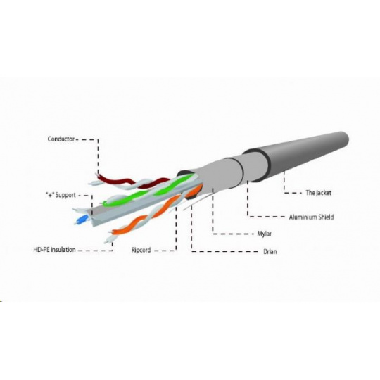 • Tienený inštalačný kábel FTP LAN s plnými vodičmi