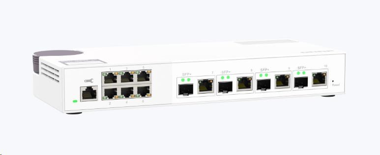 Začlenenie QSW-M2106-4C je webovo riadený prepínač (switch) úrovne 2 so štyrmi kombinovanými portami 10GbE SFP+/RJ45 a šiestimi portami 2,5 Gigabit. Začlenenie QSW-M2106-4C podporuje prepínanie a správu siete úrovne 2 (L2) prostredníctvom používateľsky prívetivého webového rozhrania, ponúka flexibilné nasadenie v hybridných vysokorýchlostných sieťových prostrediach a poskytuje riešenie pre správu siete na základnej úrovni, ktoré zvládnu používať aj tí, ktorí nie sú profesionálmi v oblasti IT. Vďaka vysokému výkonu, používateľsky prívetivej správe a stolnému prevedeniu umožňuje zariadenie QSW-M2106-4C nákladovo efektívne zvýšenie rýchlosti siete na 2,5GbE alebo 10GbE pri optimalizácii šírky pásma a zabezpečení bezpečnej údržby siete. Začlenenie QSW-M2106-4C sa vyrába na Taiwane (MIT) a poskytuje vysoko kvalitné a spoľahlivé sieťové riešenie.